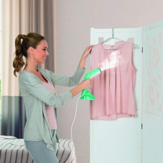 • Se foloseste vertical, astfel ca poti calca hainele direct pe umeras