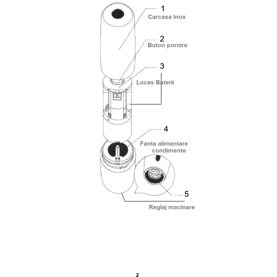 Functii speciale: O astfel de caracteristica este posibilitatea reglarii gradului de faramitare (macinare). In acest mod se pot utiliza condimente macinate extrem de fin, sau mai zgrunturos, in functie de ce anume se gateste. In partea de jos pe unde ies condimentele se poate regla macinarea rotind stanga sau dreapta reglajul fin.