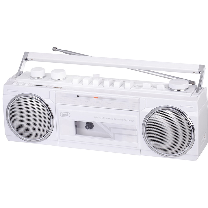 Radiocasetofon cu inregistrare Trevi Boombox vintage USB/SD Bluetooth 4 benzi Radio 6.5W alb